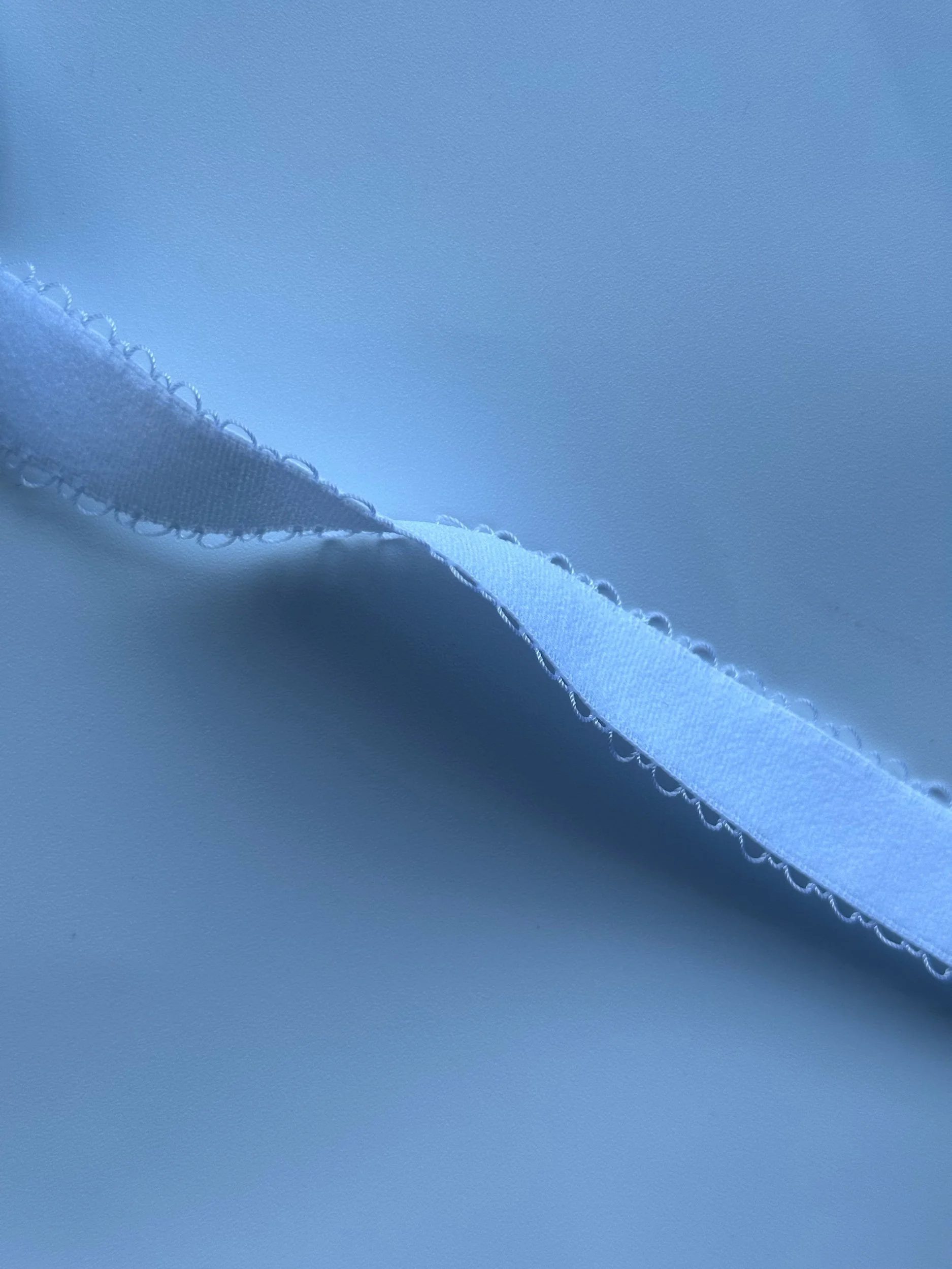This elastic is super thin, firm, with decorative picots, and features plush hand feel on both bottom and top.