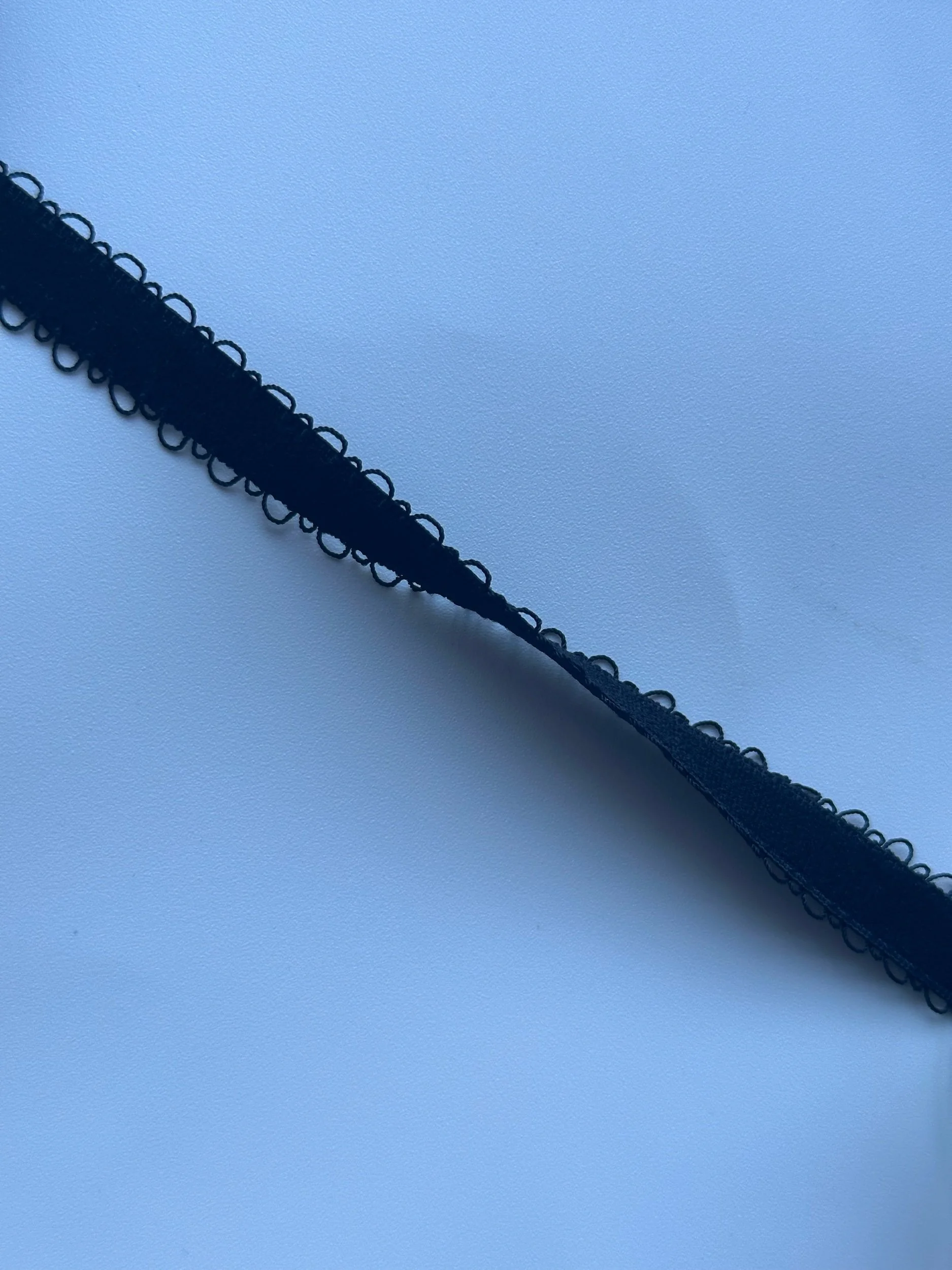 This elastic is super thin, firm, with decorative picots, and features plush hand feel on both bottom and top.