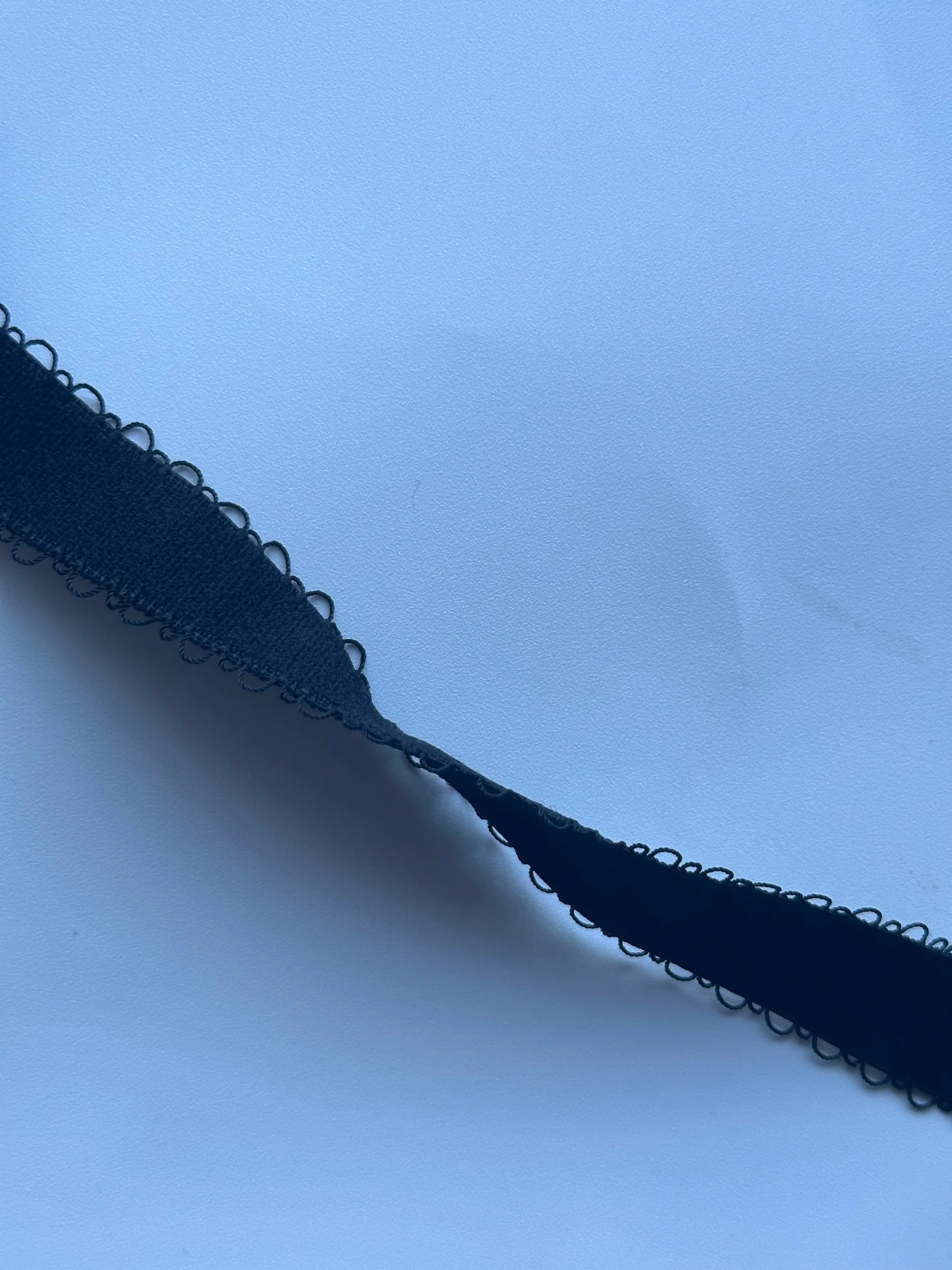 This elastic is super thin, firm, with decorative picots, and features plush hand feel on both bottom and top.